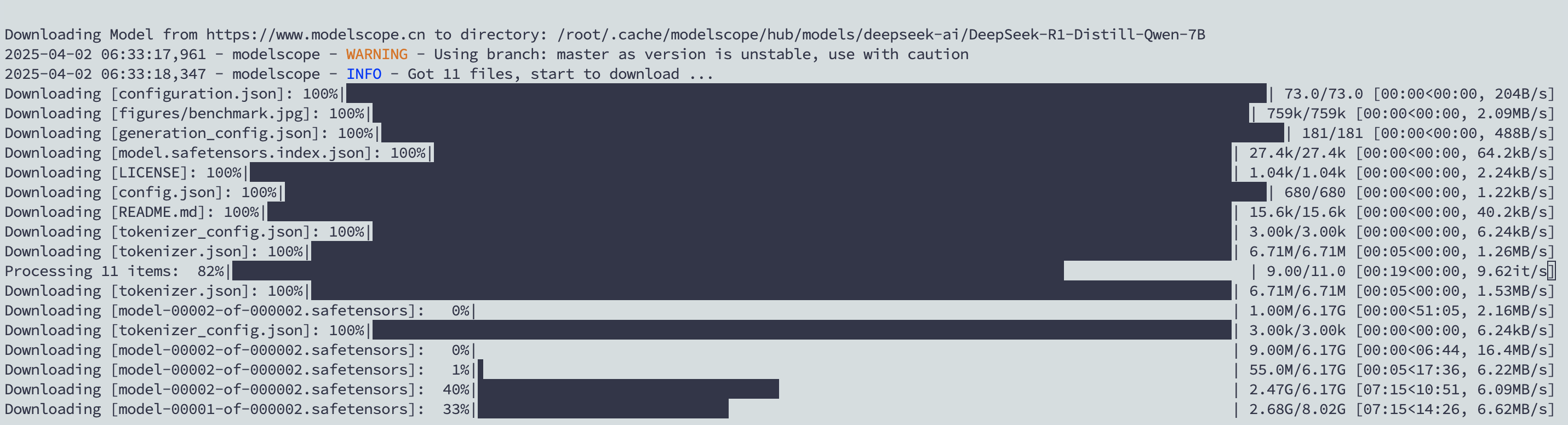 注意剩余磁盘大小(100G以上),后面的下载模型都比较大,7b基座模型需要20G,32b基座模型需要50G